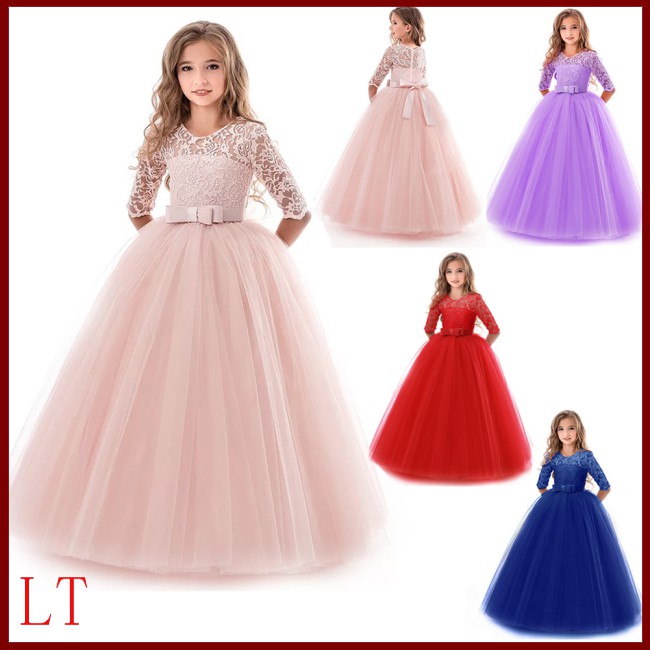 Kids Girls Long Sleeve Lace Formal Princess Dress For Wedding