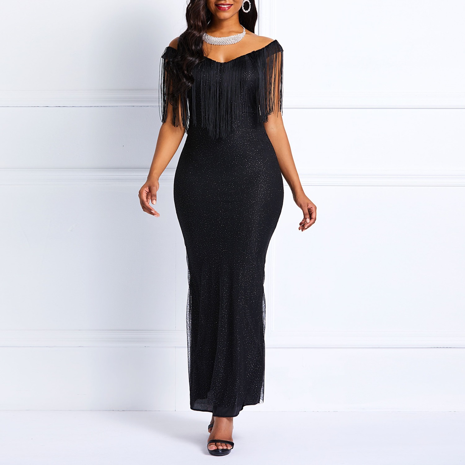 Women Clothing Long Dress Sequins Dress Women Tassel Elegant