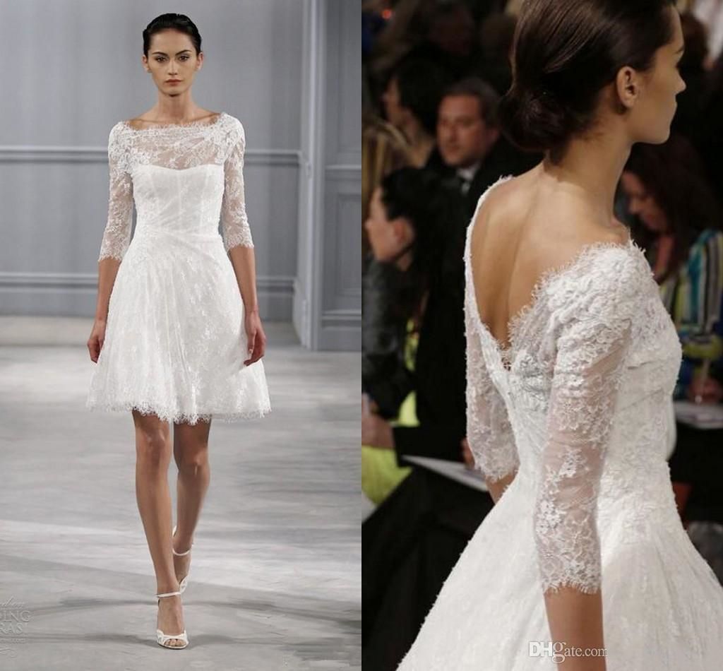 Discount Short Bohemian 2019 Beach Wedding Dresses 3 4 Long Sleeve