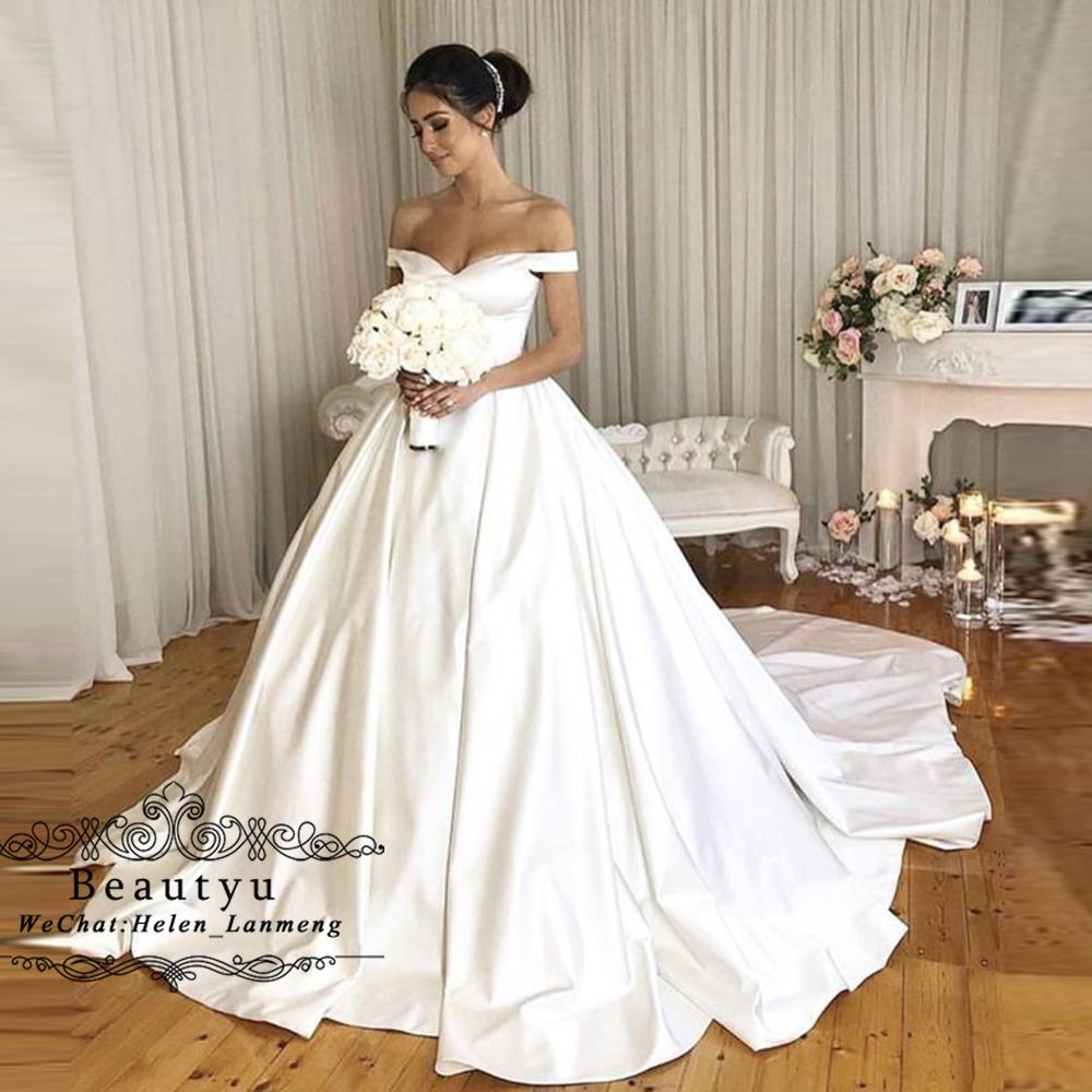 Satin Ball Gown Wedding Dresses With Pockets 2019 Elegant Royal