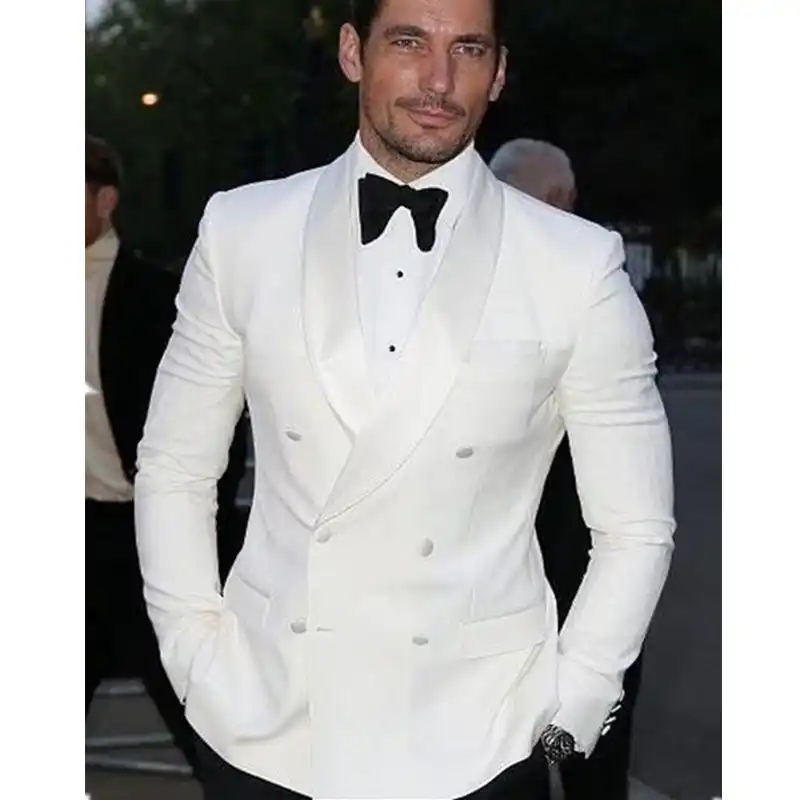 2017 Summer Style Custom Double Breasted Ivory White Man Suit