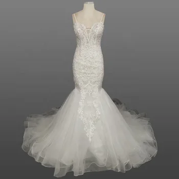 Sexy Spaghetti Straps Mermaid Wedding Dress Lace Pattern