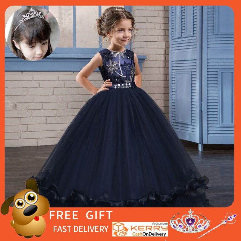 Girls Formal Party Flower Lace Princess Wedding Kids Gown Shopee