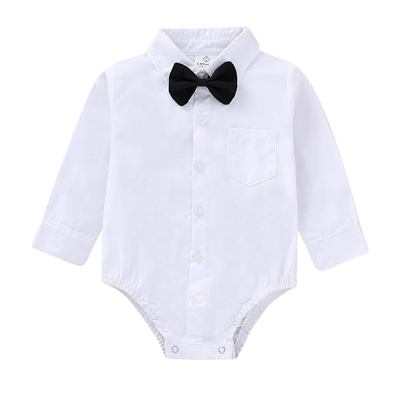Opawo Baby Boy Dress Shirt Long Sleeve With Bow Tie Gentleman