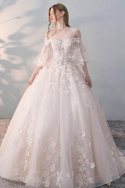 Satin Sleeves Floor Length Glamorous Wedding Dresses Cheap
