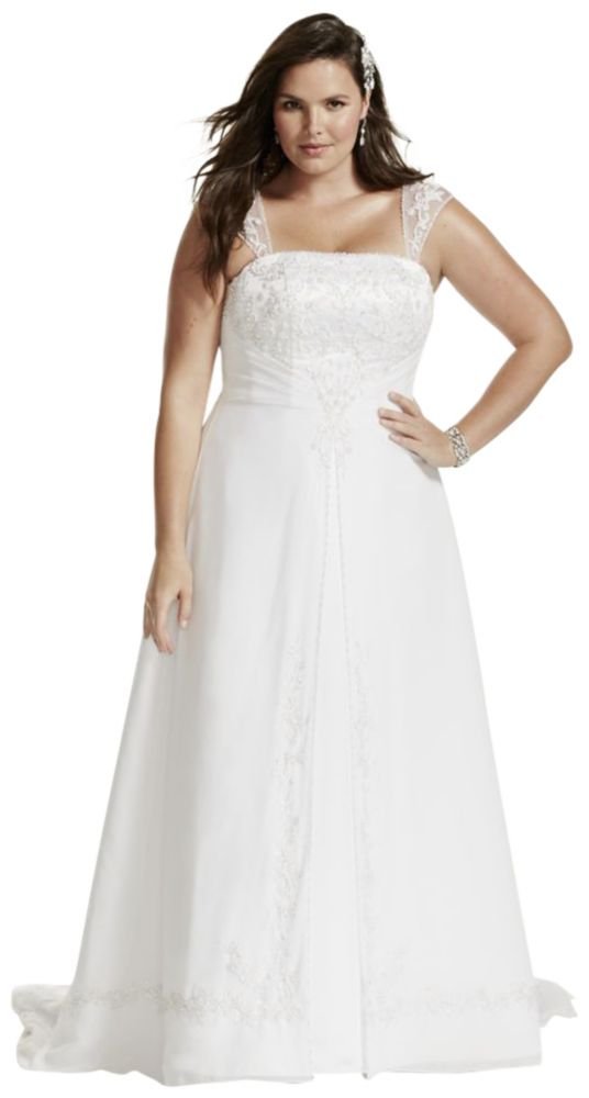 A Line Plus Size Wedding Dress With Cap Sleeves Style 9v9010