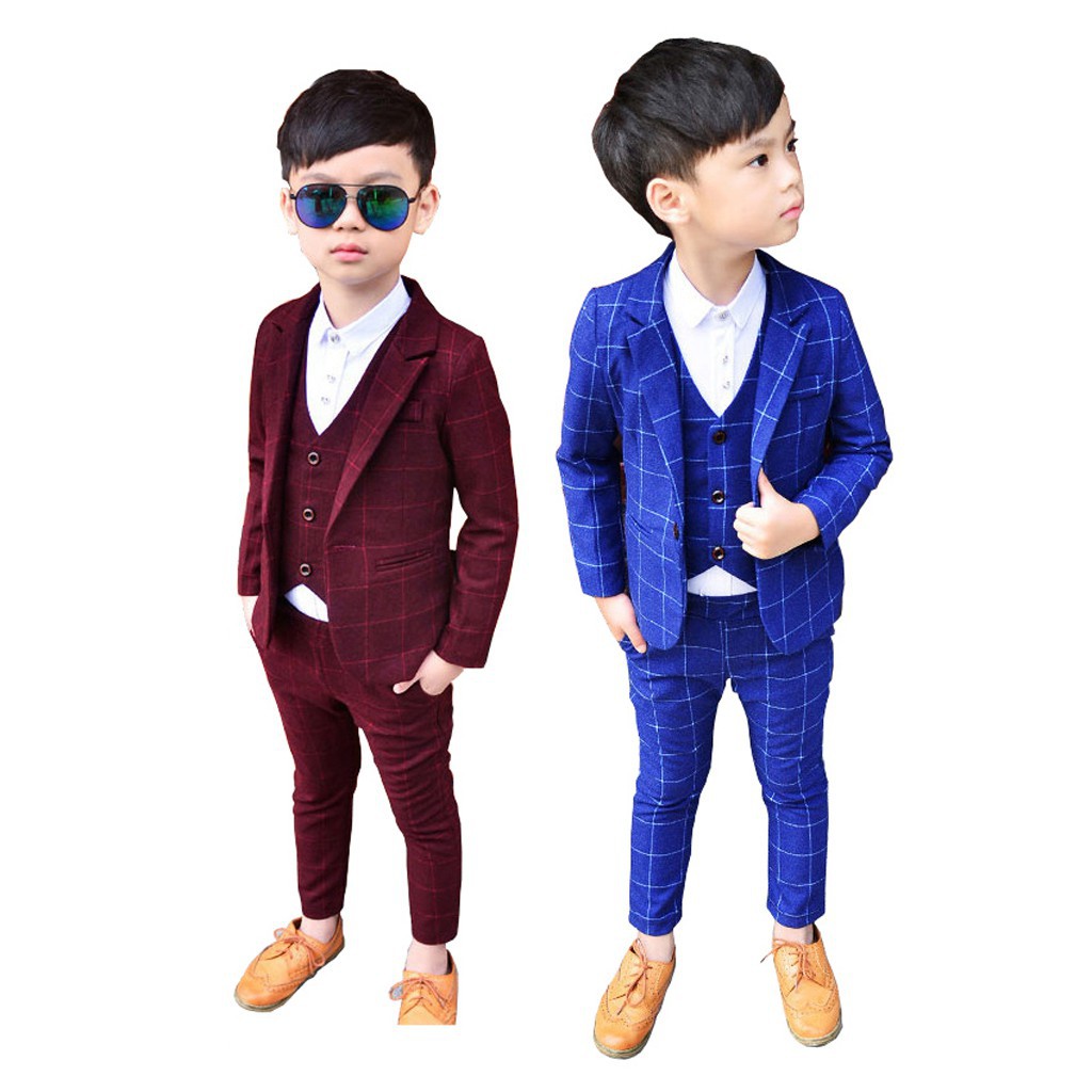 3pcs Boys Plaid Clothing Set Kids Formal Wedding Suit For Boys
