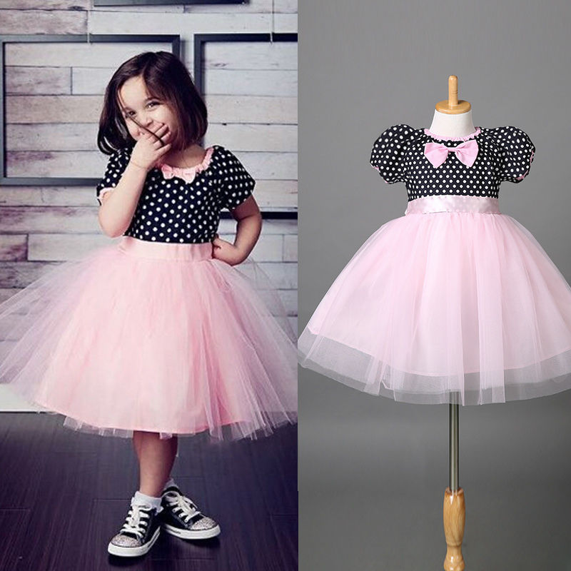 Cute Kids Girls Princess Ball Gown Dress Girls Short Sleeve Polka