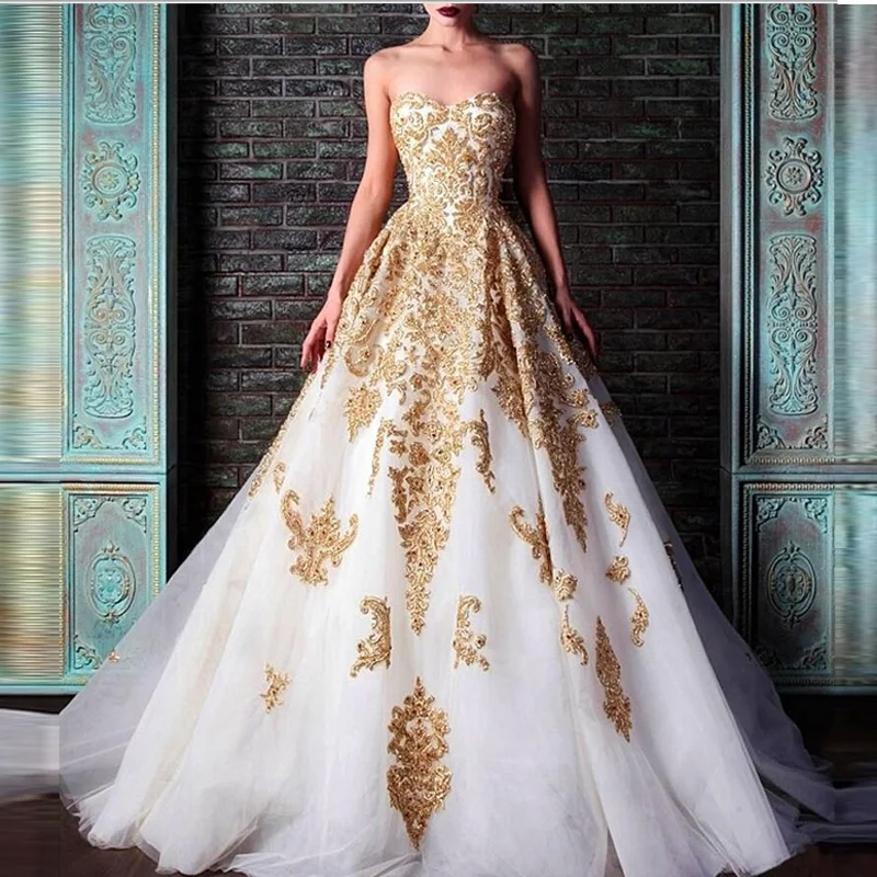 White Wedding Dress With Gold Accents 2018 Topclotheshop
