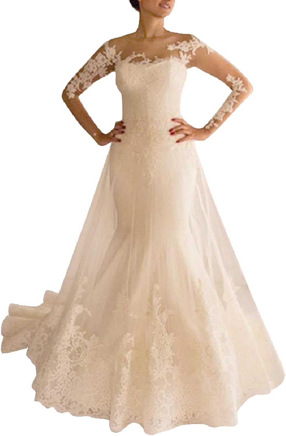 Sheer Lace Bodice Tulle Skirt Wedding Ball Gown Promfy