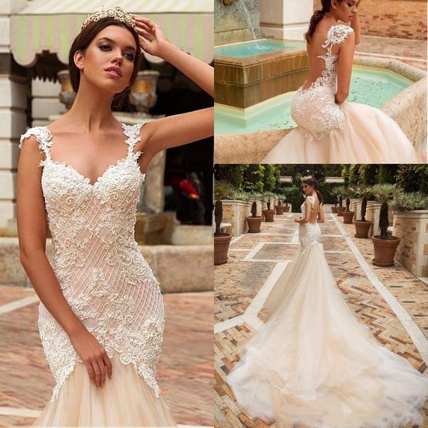 Sheer Sleeve Open Back Fit And Flare Wedding Dress Lunss