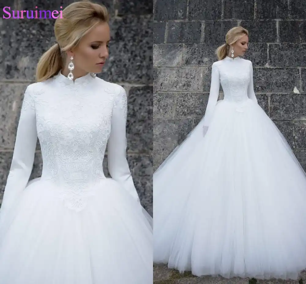 2019 Simple Arabic Dubai Muslim Boho Plus Size Ball Gown Wedding
