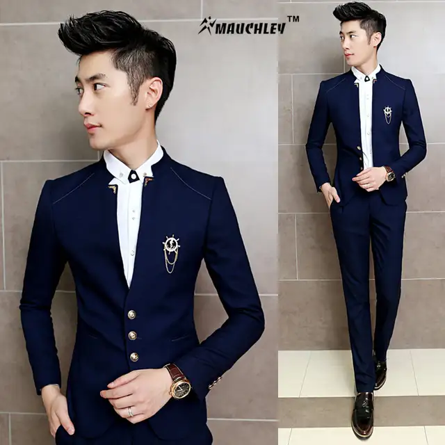 Mauchley 2pcs Set Slim Fit Prom Homme Men Costume Wedding Suits