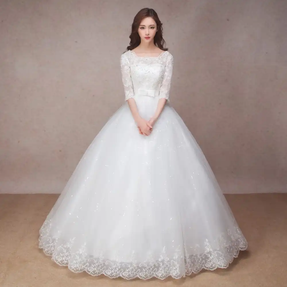 Long Half Sleeve Muslim Lace Wedding Dress High Quality 2019 Bride